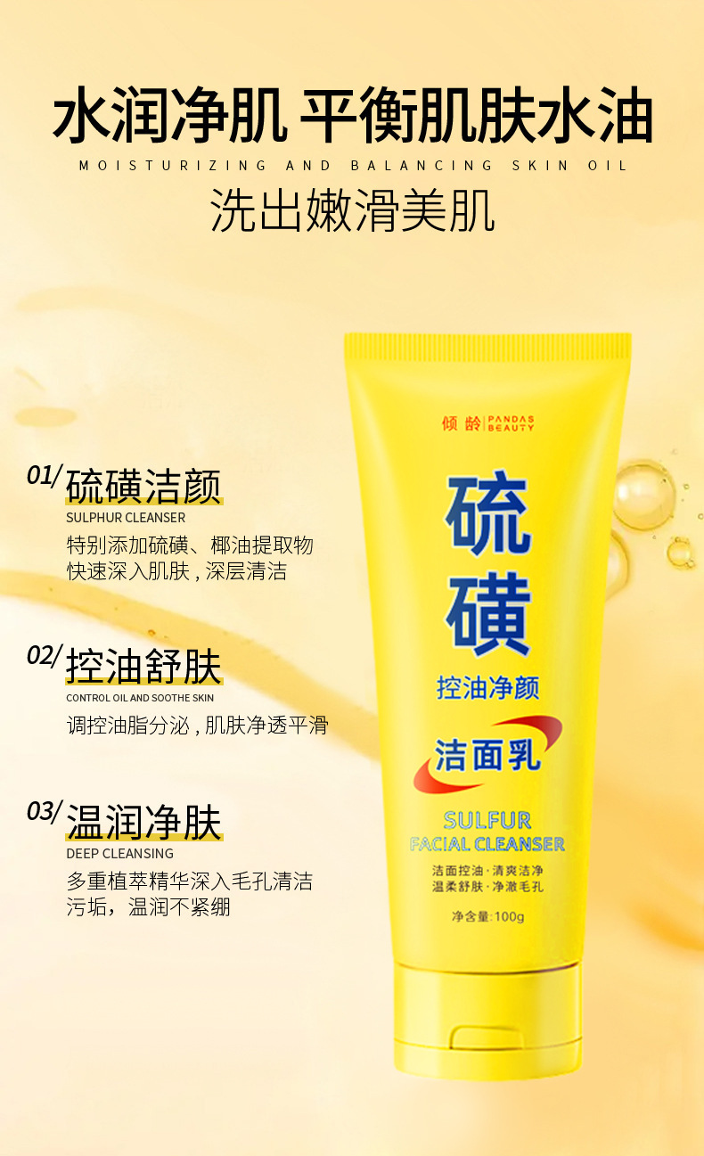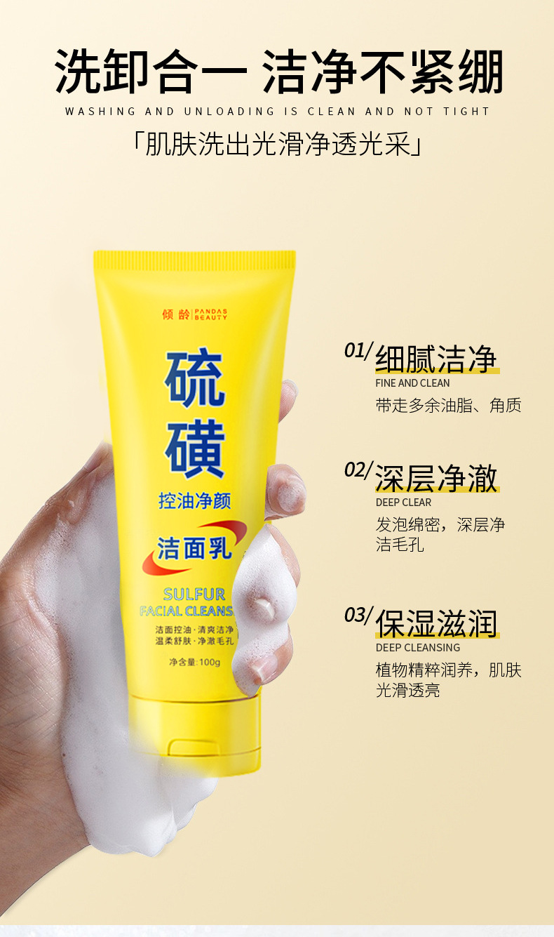 平台首页 > 皮肤护理> > 倾龄硫磺洗面奶100g深层清洁控油保湿提亮肤色硫磺净颜洁面乳 1瓶