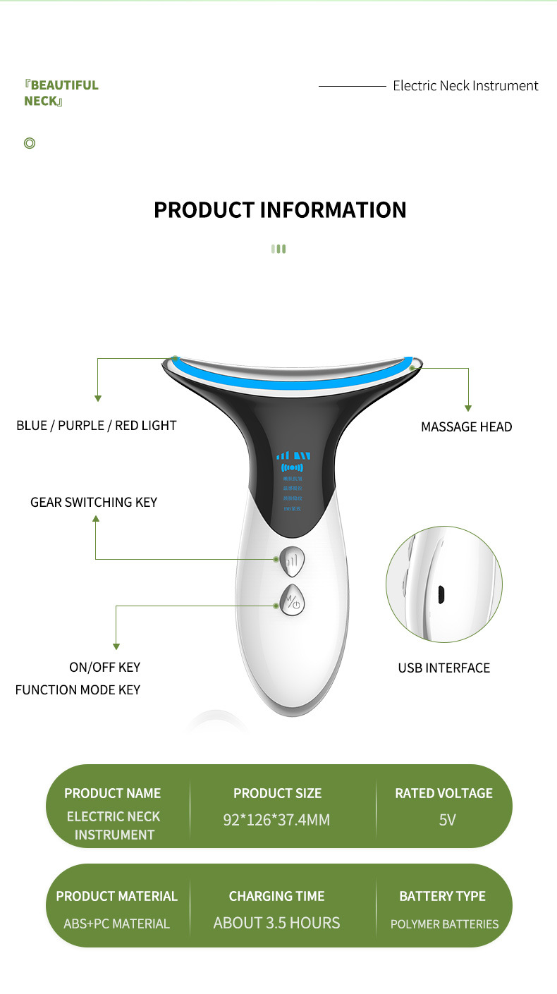 平台首页 > 美容器材> > 去颈纹法令纹美颈仪美容仪提拉紧致脸部彩光家用颈部导入按摩仪器 2台