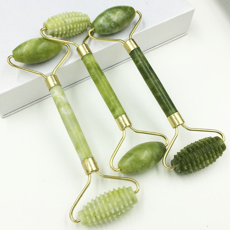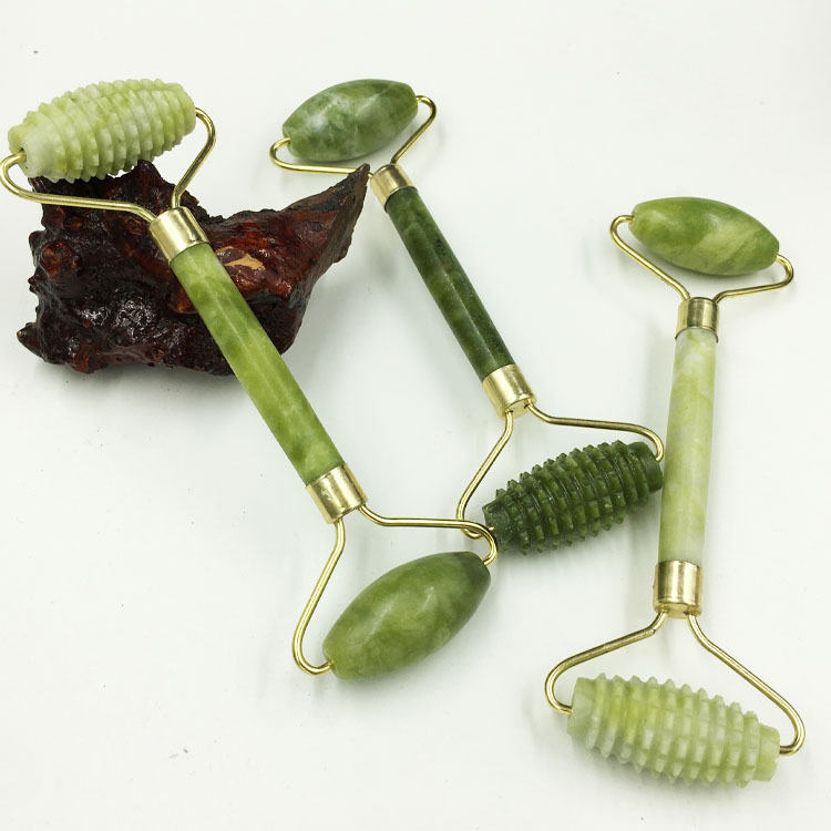 天然美容器刺头滚轮玉石美容器滚轮天然岫玉美容器按摩脸部美容棒 2个
